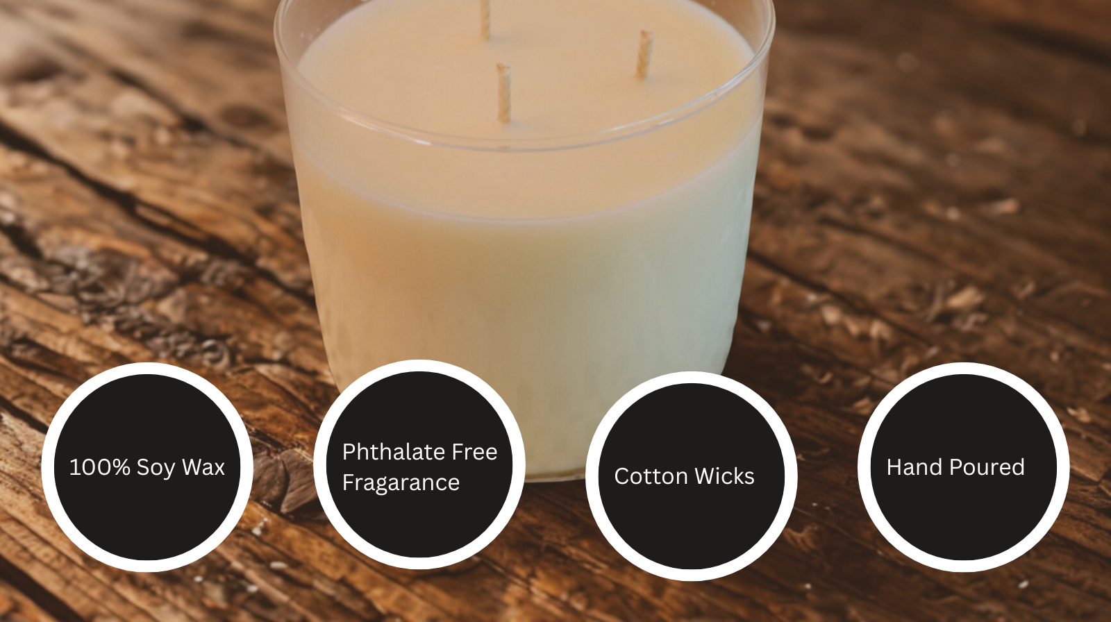 At Southern Lady Scents, we use 100% soy wax in every candle we pour — clean, slow-burning, and beautifully fragrant. Soy wax not only gives a longer, more even burn, but it’s also a renewable, plant-based resource that supports a healthier home and environment. Each candle is clearly labeled so you always know exactly what you’re bringing into your space — because honesty is part of our heritage.